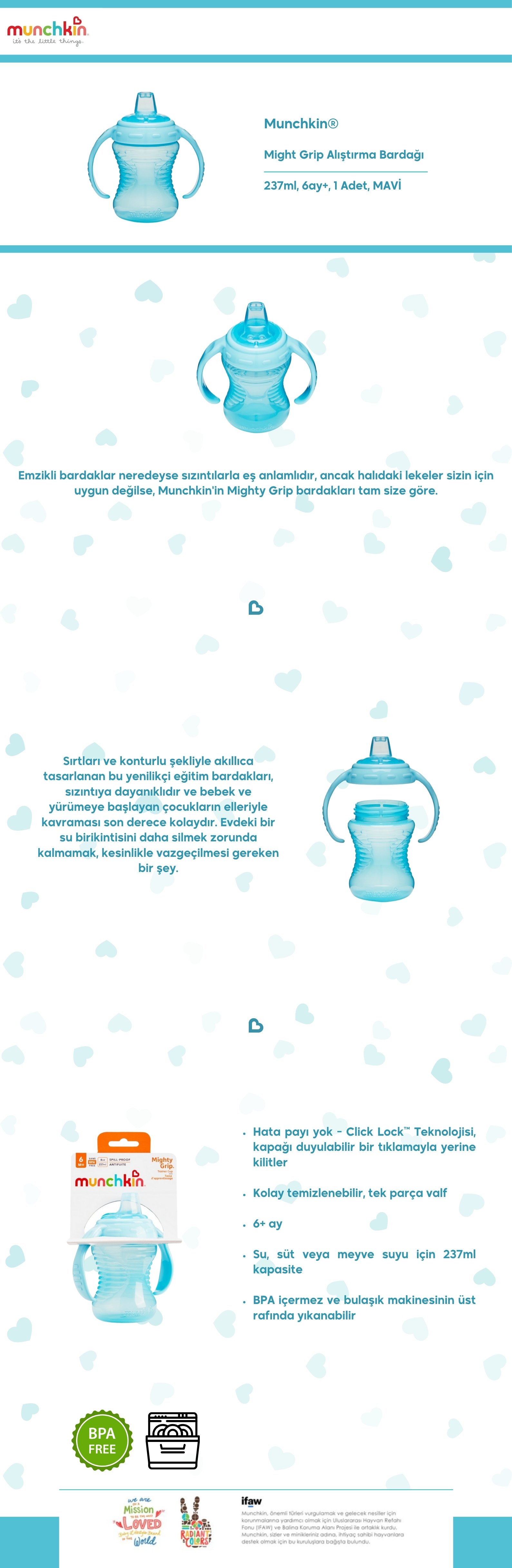 Munchkin Might Grip Alıştırma Bardağı, 237ml,6ay+1 Adet ,MAVİ