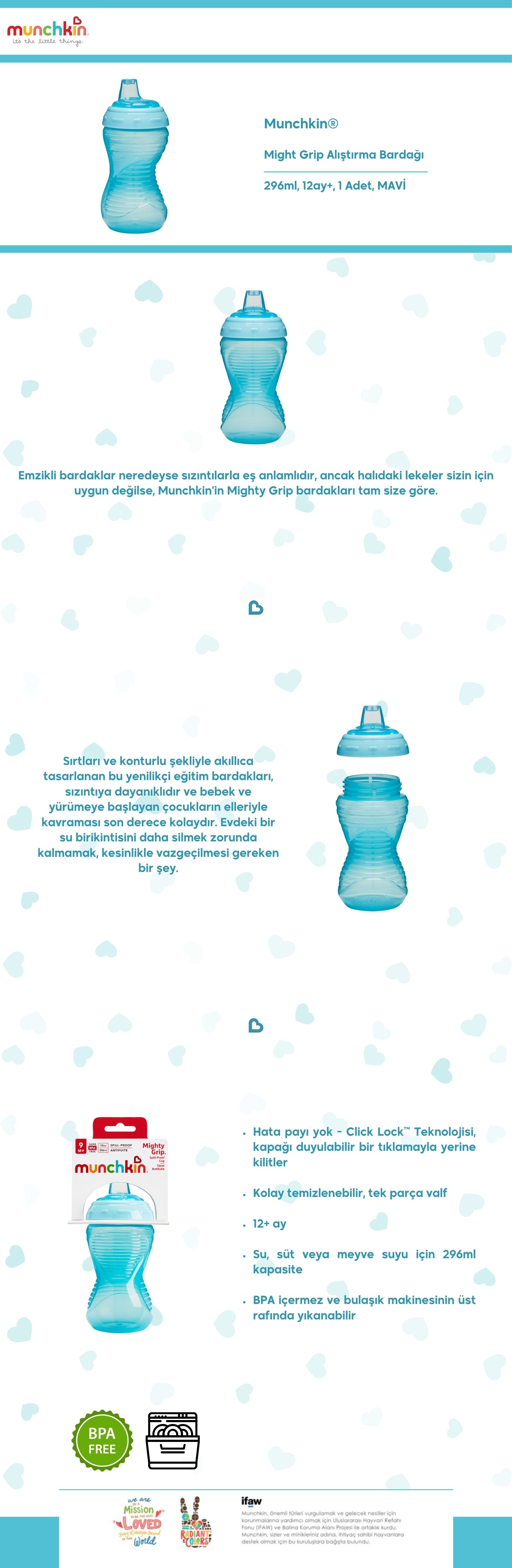 Munchkin Might Grip Alıştırma Bardağı, 296ml,12ay+1 Adet,MAVİ