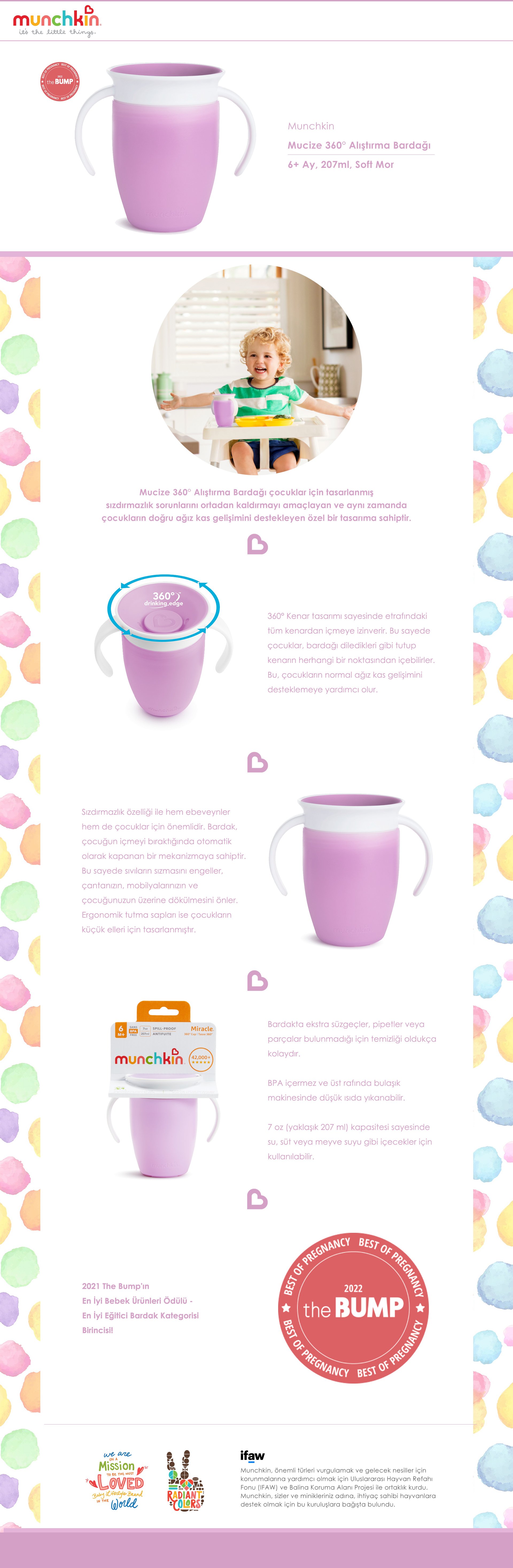 Munchkin tıklama kilitli uçlu alıştırma bardağı 6ay+,207ml,mor +Munchkin Mucize 360° Alıştırma Bardağı, 6ay+, 207ml,mor